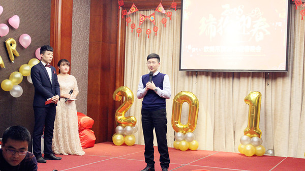 年會晚會現場充滿激情、熱烈、活躍的氣氛。首先,由公司總經理何飛君致辭,何總說:“在過去的一年,感謝歐美家人的付出,2017年歐美完成了多項改革,擴大了團隊規模;提升了企業形象,可以說2017年為我們日后的發展打好了堅實的基礎。所以在2018年的工作中希望我們都可以拿出激情與干勁,為我們的美好未來而奮斗” !